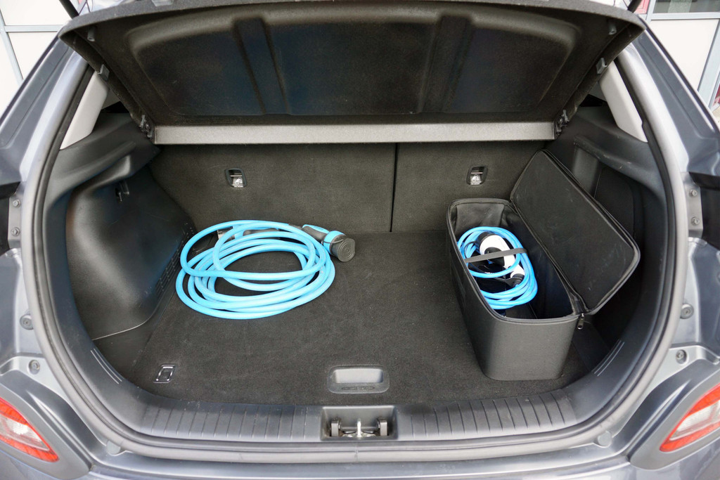 De accu van de Hyundai Kona EV heeft een capaciteit van 67,5 kWh. Daarvan is 64 kWh daadwerkelijk te gebruiken. Hiermee wordt in de praktijk een actieradius van ongeveer 480 kilometer gehaald. Opladen gaat via een Type 2 aansluiting en het laadvermogen van de boordlader is 11 kW. Hiermee is de accu in ongeveer 7 uur vanaf leeg weer helemaal opgeladen. Snelladen is mogelijk via een CCS aansluiting. Het maximale snellaadvermogen is 77 kW. De accu kan echter niet continu met dit vermogen geladen worden. In een gemiddelde snellaadsessie zal het gemiddelde snellaadvermogen ongeveer 64 kW zijn. De accu laadt daarmee in ongeveer 45 minuten van 10 tot 80%. Hiermee wordt ongeveer 380 kilometer aan actieradius toegevoegd.