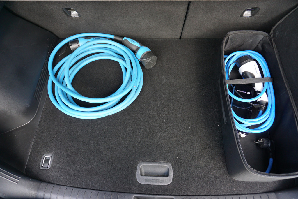 De accu van de Hyundai Kona EV heeft een capaciteit van 67,5 kWh. Daarvan is 64 kWh daadwerkelijk te gebruiken. Hiermee wordt in de praktijk een actieradius van ongeveer 480 kilometer gehaald. Opladen gaat via een Type 2 aansluiting en het laadvermogen van de boordlader is 11 kW. Hiermee is de accu in ongeveer 7 uur vanaf leeg weer helemaal opgeladen. Snelladen is mogelijk via een CCS aansluiting. Het maximale snellaadvermogen is 77 kW. De accu kan echter niet continu met dit vermogen geladen worden. In een gemiddelde snellaadsessie zal het gemiddelde snellaadvermogen ongeveer 64 kW zijn. De accu laadt daarmee in ongeveer 45 minuten van 10 tot 80%. Hiermee wordt ongeveer 380 kilometer aan actieradius toegevoegd.